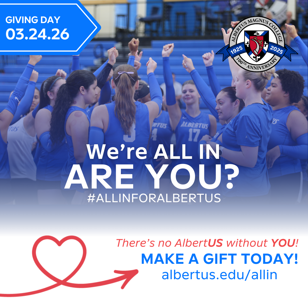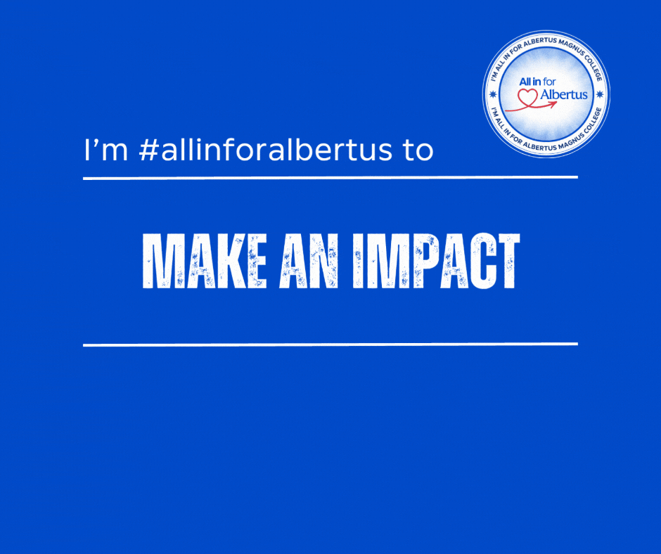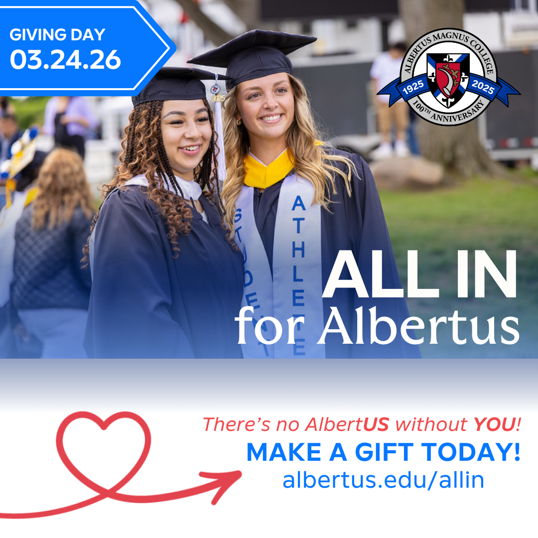 I have proudly made a gift to Albertus Magnus College for ALL IN Giving Day. Join me, and make a gift today to make the dream of an Albertus degree a reality for students! → albertus.edu/allin